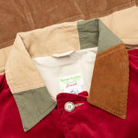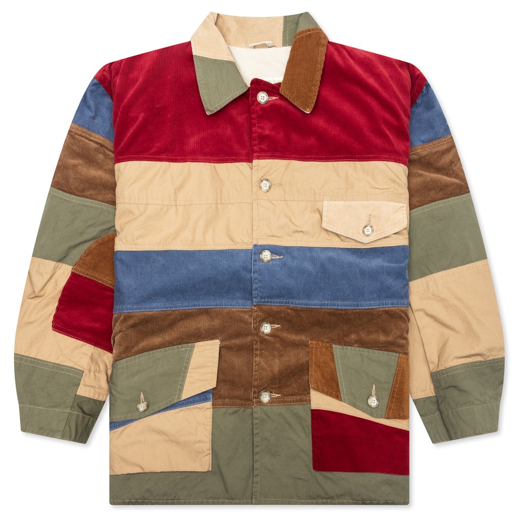 The Saint Michael x Shermer Academy Safari Jacket in Multi color block. With long sleeves and a spread collar, this jacket offers a relaxed fit. It features a front button closure and three front pockets on the front. - Long sleeves - Spread collar - Relaxed fit - Front button closure - Three front pockets - Block coloring - Style No: SM-YS8-0000-C42