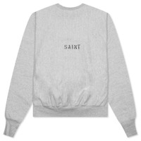 Saint Michael’s distinct aesthetic is present in the STM Crew Sweater. The cotton-cut silhouette spotlights ribbed detailing at the trim. The faded logo branding at the chest and rear complements the look. - 100% cotton - Hand-applied distressing - Ribbed trims - Printed logo branding - Style No: SM-A22-0000-018
