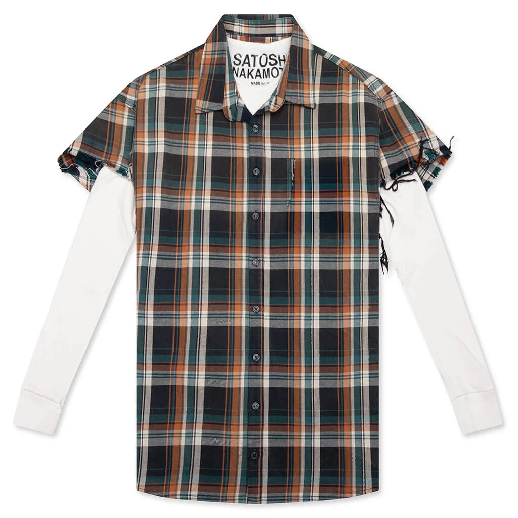 The Bender Cut Off Flannel from Satoshi Nakamoto reimagines a staple layer through a rugged, deconstructed lens. Crafted from cotton, this piece spotlights a layered construction featuring a flannel and waffle-knit thermal. The flannel is designed with cut-off sleeves that have frayed edges. A Satoshi Nakamoto logo is stamped at the back for a signature touch. THIS PRODUCT DOES NOT QUALIFY FOR ANY DISCOUNTS OR SPECIAL PROMOTIONS. EXCLUDED FROM END OF YEAR SALE. - 100% Cotton - Layered flannel and waffle-knit thermal - Spread collar - Button-up closure - Frayed edges at flannel sleeves - Screen-printed logo - Style No: FW25SHT001-ORG