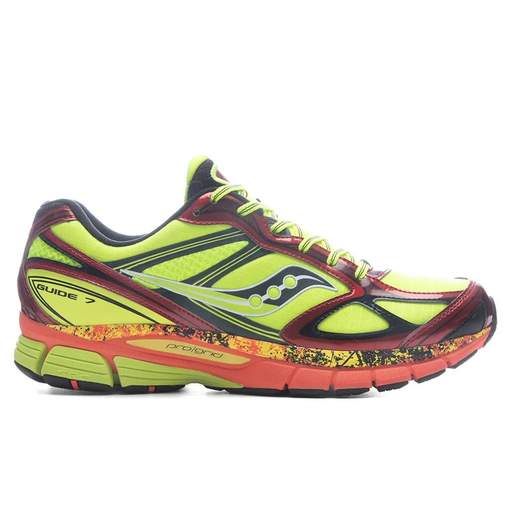 Let your instincts create your own path with the Saucony Progrid Guide 7. Designed for performance, this classic gets reimagined for today's movements. Featuring a mesh upper, complemented by leather overlays for a stand out look. Saucony's ProGrid technology offers extra support and cushioning. The rubber outsole gives more stability and traction while on the journey. Saucony branding on the side, tongue, and heel finishes the look. Style No: S70995-1 - Mesh upper - Leather accents - Lace closure - Sock top liner - Saucony branding details - ProGrid technology - Rubber outsole - All sizes are listed in U.S. Mens sizing unless stated otherwise - Style No: S70995-1