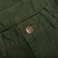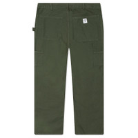 The Cotton Canvas Painter Pant in Moss Green combines durability with practical design. Crafted from 11.5oz cotton canvas fabric, these high-rise pants feature a straight-leg fit for timeless appeal. A 5-pocket design is complemented by three drop-in tool pockets and a tool loop on the thighs, offering ample utility. Double-knee reinforcement ensures lasting wear, while a custom metal top button and YKK zipper fly complete the functional construction. - 100% Cotton - High rise straight leg fit - 11.5oz cotton canvas fabric - 5-Pocket design - Three drop-in tool pockets on thighs - Tool loop at thigh - Custom metal top button - YKK zipper fly - Double-knee reinforcement - Style No: PU472-B-MOGRN