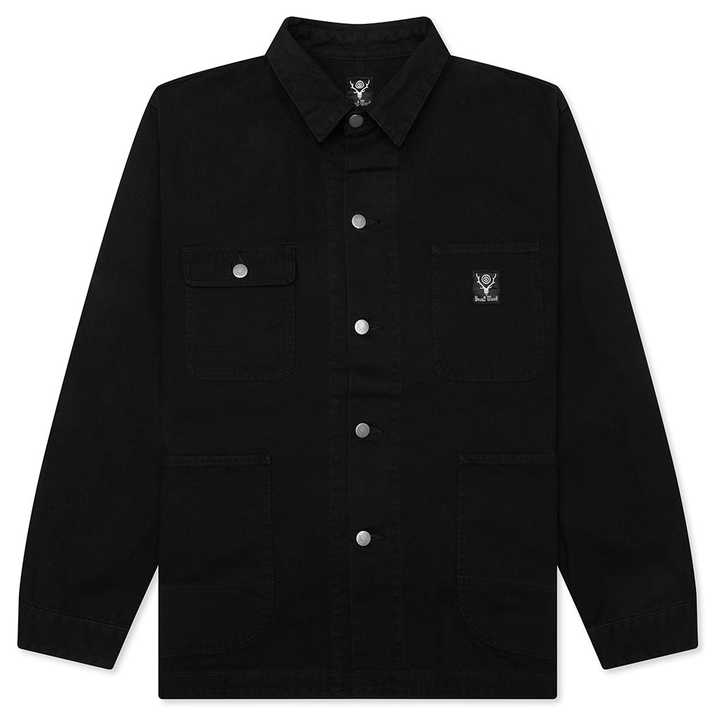 The South2 West8 11.5oz Cotton Canvas Coverall delivers rugged utility with a boxy, workwear-inspired fit. Crafted entirely from heavyweight cotton canvas, this one-piece silhouette features four functional pockets, a classic collar, and custom buttons throughout. A subtle logo patch at the chest pocket adds a touch of signature branding to the practical design. - 100% Cotton - 11.5oz cotton canvas fabric - Four pockets - Classic collar - Boxy fit - Custom buttons - Logo patch on chest pocket - Style No: QV574-B