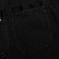 The Lino Nylon Tela Field Jacket in Black blends linen and polyamide for a outerwear piece. Featuring a spread collar and button closure, it includes a patch pocket at the chest and flap and welt pockets for ample storage. A detachable felted logo patch on the sleeve adds a customizable touch, while press-stud fastenings at the cuffs provide adjustable comfort. - 80% Linen / 20% Polyamide - Spread collar - Button closure - Patch pocket at chest - Flap and welt pockets - Detachable felted logo patch at sleeve - Press-stud fastening at cuffs - Style No: 801542330-V0029