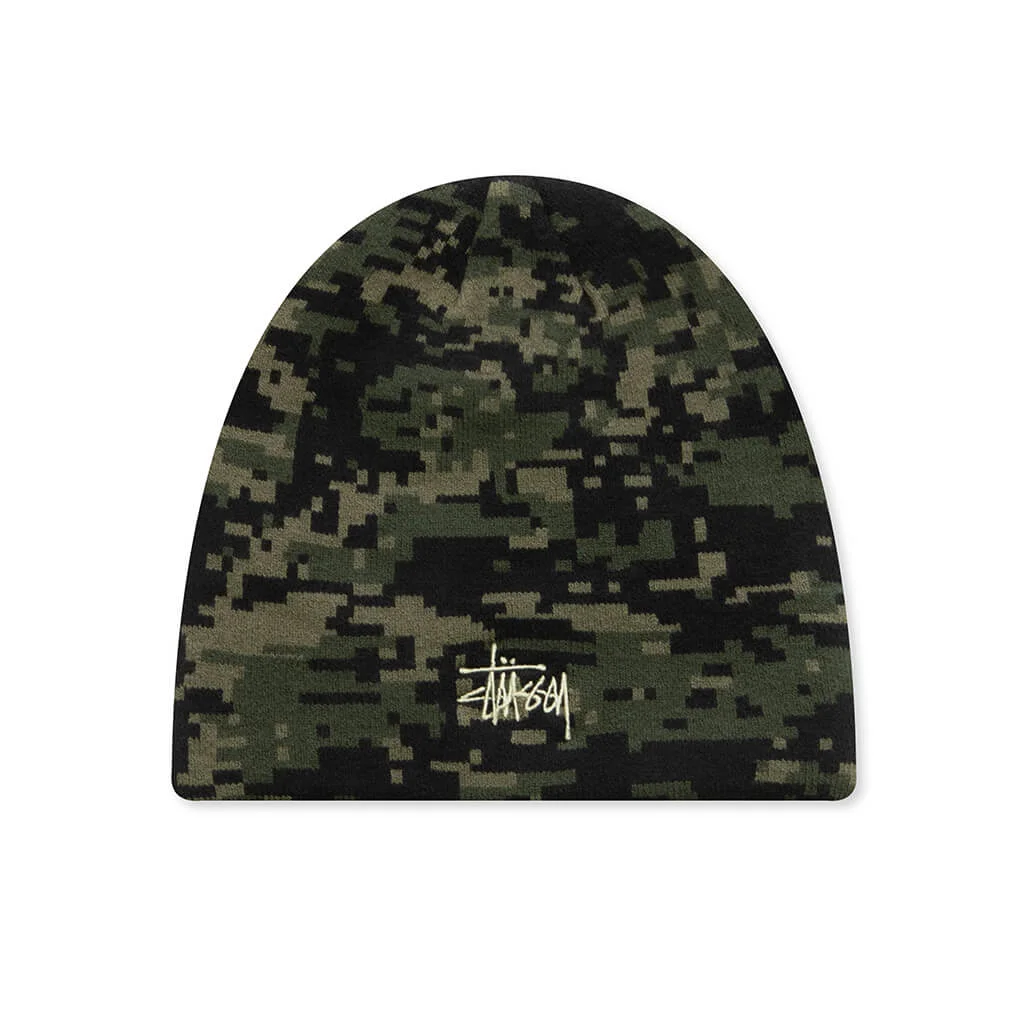 Stussy is a pioneering California-based label born from surf culture and shaped by skateboarding and hip-hop influences. The Stussy Basic Digi Camo Skullcap is a skullcap beanie crafted from 100% acrylic. Designed with a head-hugging fit, this beanie is adorned with a digital camo print and an embroidered logo. THIS PRODUCT DOES NOT QUALIFY FOR DISCOUNTS OR SPECIAL PROMOTIONS. - Brand: Stussy - Product Name: Basic Digi Camo Skullcap - Category: Skullcap Beanie - Color: Green - Material: 100% Acrylic - Fit: Fitted, head-hugging - Graphics: Embroidered - Pattern: Digital camo print - Construction Notes: Fine gauge knit, 6-point top construction - Style Code: 1321269-GREN