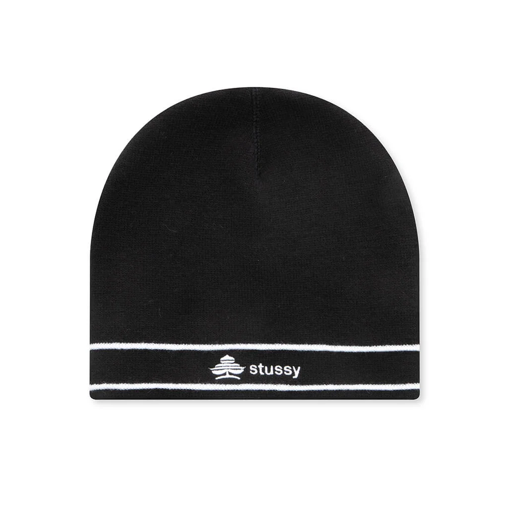 Stussy is a pioneering California-based label born from surf culture and shaped by skateboarding and hip-hop influences. The Stussy Clover Skullcap is a skullcap beanie crafted from 100% acrylic. Designed with a head-hugging fit, this beanie is adorned with an embroidered logo and jacquard knit stripes. THIS PRODUCT DOES NOT QUALIFY FOR DISCOUNTS OR SPECIAL PROMOTIONS. - Brand: Stussy - Product Name: Clover Skullcap - Category: Skullcap Beanie - Color: Black - Material: 100% Acrylic - Fit: Fitted, head-hugging - Graphics: Embroidered - Construction Notes: Fine knit gauge, 4-point top construction, jacquard knit stripes - Style Code: 1321248-BLAC
