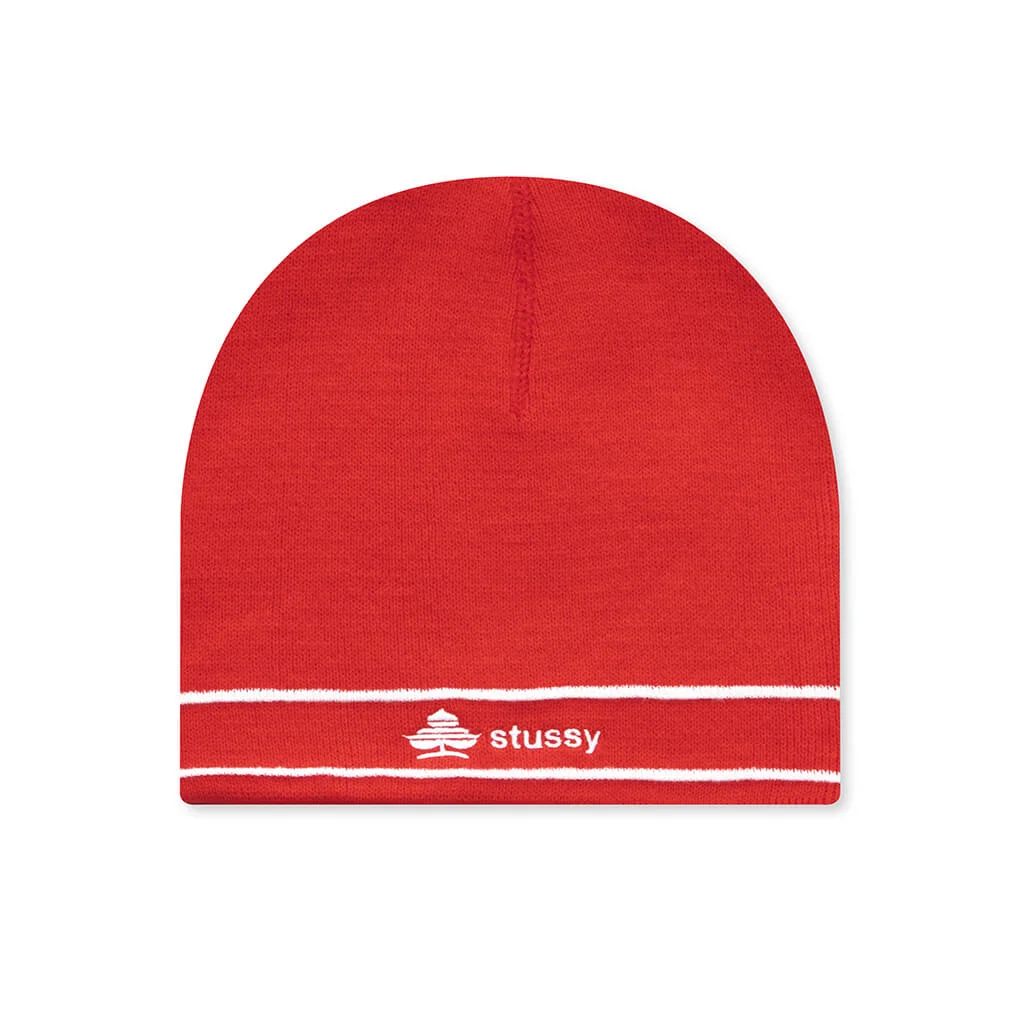 Stussy is a pioneering California-based label born from surf culture and shaped by skateboarding and hip-hop influences. The Stussy Clover Skullcap is a skullcap beanie crafted from 100% acrylic. Designed with a head-hugging fit, this beanie is adorned with an embroidered logo and jacquard knit stripes. THIS PRODUCT DOES NOT QUALIFY FOR DISCOUNTS OR SPECIAL PROMOTIONS. - Brand: Stussy - Product Name: Clover Skullcap - Category: Skullcap Beanie - Color: Red - Material: 100% Acrylic - Fit: Fitted, head-hugging - Graphics: Embroidered - Construction Notes: Fine knit gauge, 4-point top construction, jacquard knit stripes - Style Code: 1321248-REDD