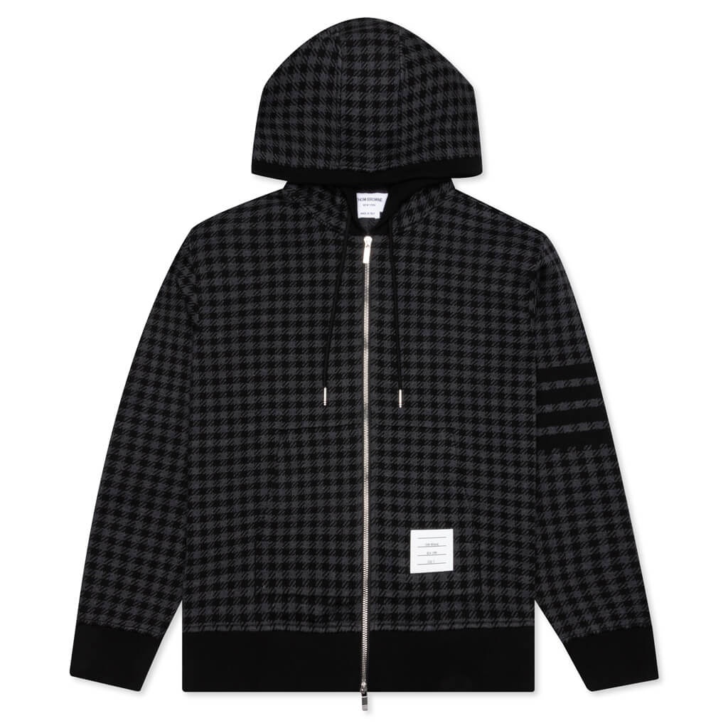 THOM BROWNE COTTON GUNCLUB CHECK JACQUARD 4-BAR ZIP HOODIE - BLACK
