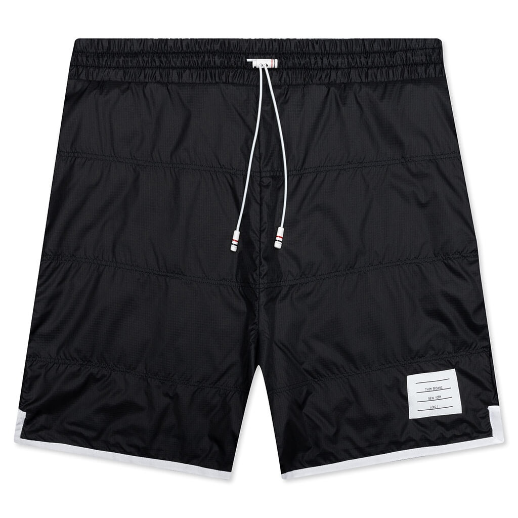 Thom Browne’s contemporary fashion aesthetics are present in the Track Shorts w/ Jersey Lining in Quilted Ripstop. Composed of nylon, the premium design spotlights a quilted ripstop paired with jersey lining. An elastic drawstring waistband is placed with striped aglets. A signature name tag applique is placed at the left thigh. The slanted side pockets paired with the single back welt pocket add a functional touch. The signature striped grosgrain loop tab at the rear ties together the overall look. - 100% nylon - Quilted ripstop - Jersey lining - Elastic drawstring waistband - Striped aglets - Name tag applique - Slant side pockets - Single rear welt pocket - Striped grosgrain loop tab - Style No: MJQ136A-06859-415