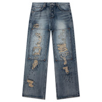 The Vintage Double Knee Pants redefines denim with Thug Club attitude. Crafted from premium cotton, the pants are treated with a damage wash process, giving them a naturally worn feel. Double-layered knees, hand-stitched details, and distressing add dimension and edge to the look. Signature branding is found through custom hardware, a woven label, and leather jacron with the Thug Club emblem. - 100% Cotton - Damage wash - Button-fly - 5-pocket design - Double-layered knees - Hand-stitched details - Distressed details - Thug Club emblem - Custom hardware - Woven label - Leather jacron - Style No: TC25PT2801