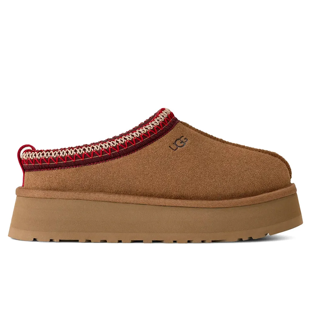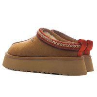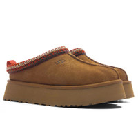 The UGG Women’s Tazz II Slipper is a timeless take on its Tasman counterpart with its slight platform sole. The silhouette spotlights a suede upper paired with a signature UGGbraid. The lining and insole is crafted with plush sheepskin for added comfort. The textile binding is cut from recycled polyester fibers, with the Sugarcane EVA outsole and heat-embossed UGG logo wrapping up the design. ALL SALES ARE FINAL. - Suede upper - UGGbraid made with 100% recycled polyester - 10mm sheepskin lining/insole - Textile binding - Heat-embossed branding - EVA midsole - Sugarcane EVA outsole - 1.75" platform height - All sizes are listed in U.S. Women’s sizing unless stated otherwise - Style No: 1174471-CHE