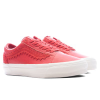The Vans Premium Old Skool Chou Chou elevates the classic silhouette with refined detailing and modern comfort. Crafted with a full tumbled leather upper and a soft padded collar, the design features a lace-inspired embroidered sidestripe for a textural twist. A Sola Foam ADC insole provides all-day cushioning, while the glossy higher sidewall and signature waffle outsole complete the look. - Full leather upper - Soft padded collar - Lace-inspired embroidered sidestripe - Sola Foam ADC insole - Glossy higher sidewall - Signature waffle outsole - All styles listed in U.S. Men's sizes unless stated otherwise - Style no: VN000VB3IZQ1