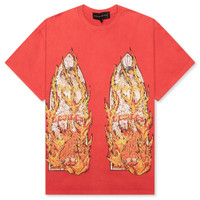 RHINESTONE FLAME GLASS JERSEY TEE - RUBY