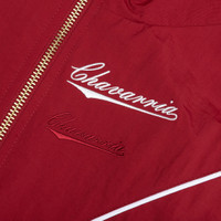 The Willy Chavarria Bad Boy Track Jacket is crafted from 100% nylon with a 100% cupro lining for a soft breathable feel. Featuring a chevron panel accented with piping, it offers a modern silhouette with a standing collar and branded full zip tab closure. Elastic self-faced waistband and cuffs ensure a secure fit, while the front zip pockets and stacked embroidered script logo on the left chest complete the refined look. - Shell: 100% Nylon - Lining: 100% Cupro - Chevron panel with piping detail - Elastic self-faced waistband and cuffs - Branded full zip tab closure with standing collar - Two front zip pockets - Embroidered stacked script logo on left chest - Style No: WCJKT0053-006