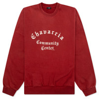 The Community Center Hooligan Crew from Willy Chavarria offers a relaxed, oversized fit crafted from 100% cotton with a distressed garment finish for a lived-in feel. Designed with ribbed crewneck, cuffs, and waistband, it features screen-printed branding on the front and practical side pockets for everyday convenience. - 100% Cotton - Oversized fit - Ribbed crewneck, cuffs, and waistband - Distressed garment finish - Screen-printed branding on front - Side pockets - Style No: WCJSY0021-035