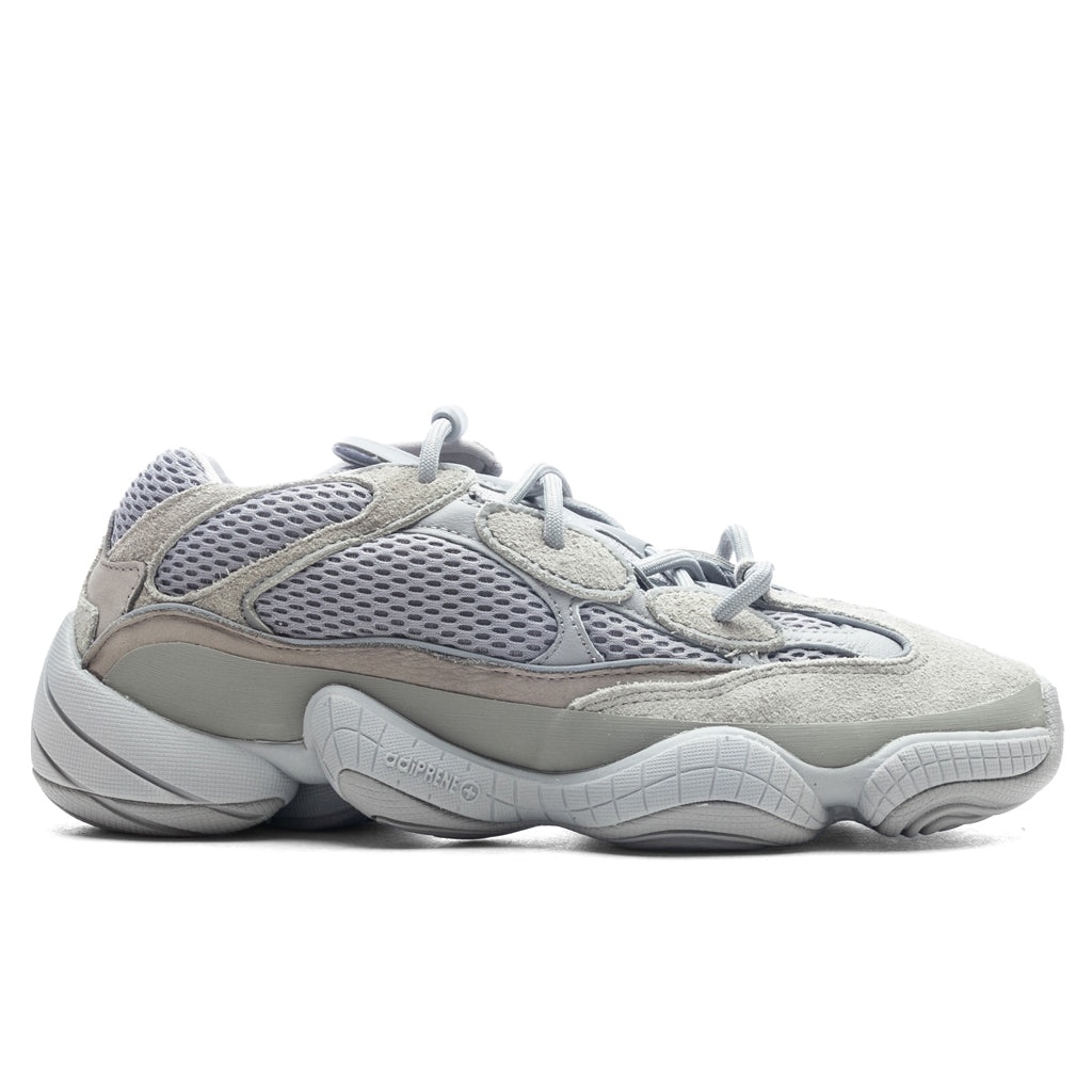 The latest iteration of the Yeezy 500 introduces the ‘Stone Salt’ colorway which follows Kanye West’s monochromatic and neutral aesthetic. Suede and mesh fabric work in tandem to craft the upper for a structured and breathable silhouette. The upper seamlessly transitions into the rubber outsole as it protects the integrity of the shoe and encases the adiPRENE technology that offers extreme cushioning. Featured details included embossed branding, a lace closure, and a tongue pull-tab for easy application. - Mesh upper - Suede overlays - Rubber outsole - adiPRENE cushioning - Lace closure - Tongue pull tab - All sizes are listed in U.S. Men's sizing unless stated otherwise - Style no: IE4783