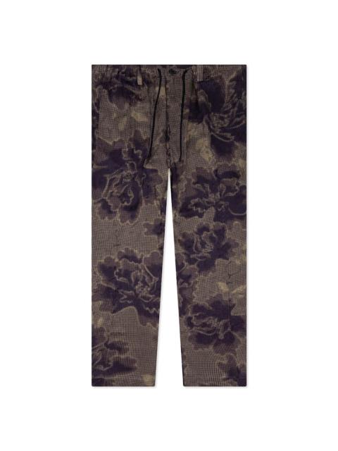 SILK FLORAL JACQUARD PANTS - NAVY