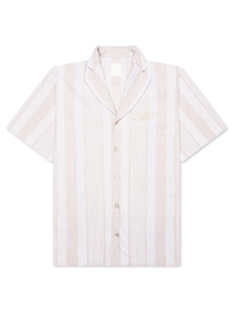 STRIPPED COTTON TOWELLING BOXY FIT SHIRT - WHITE/BEIGE