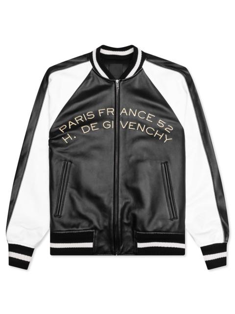 NAPPA LEATHER VARSITY JACKET WITH CHANDELIER AND SNAKE EMBROIDERIES - BLACK/WHITE