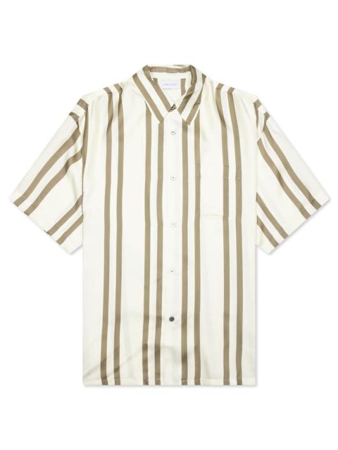 SILK S/S BUTTON UP - BARK STRIPE/SALT