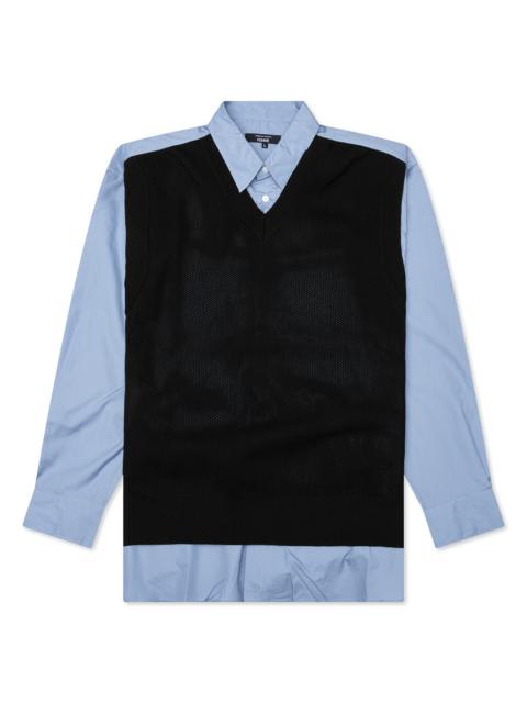 MIXED MATERIAL SHIRT - SAX/NAVY