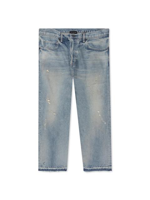 LOOSE VINTAGE WASH DENIM PANTS - BLEU JEAN CLAIR