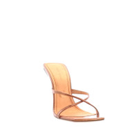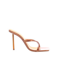 Slipper with two crossed straps crafted in Copper mirror leather. Set on a 95mm stiletto heel, square toe, leather sole with non-slip. Made in Italy. 775.00 €
