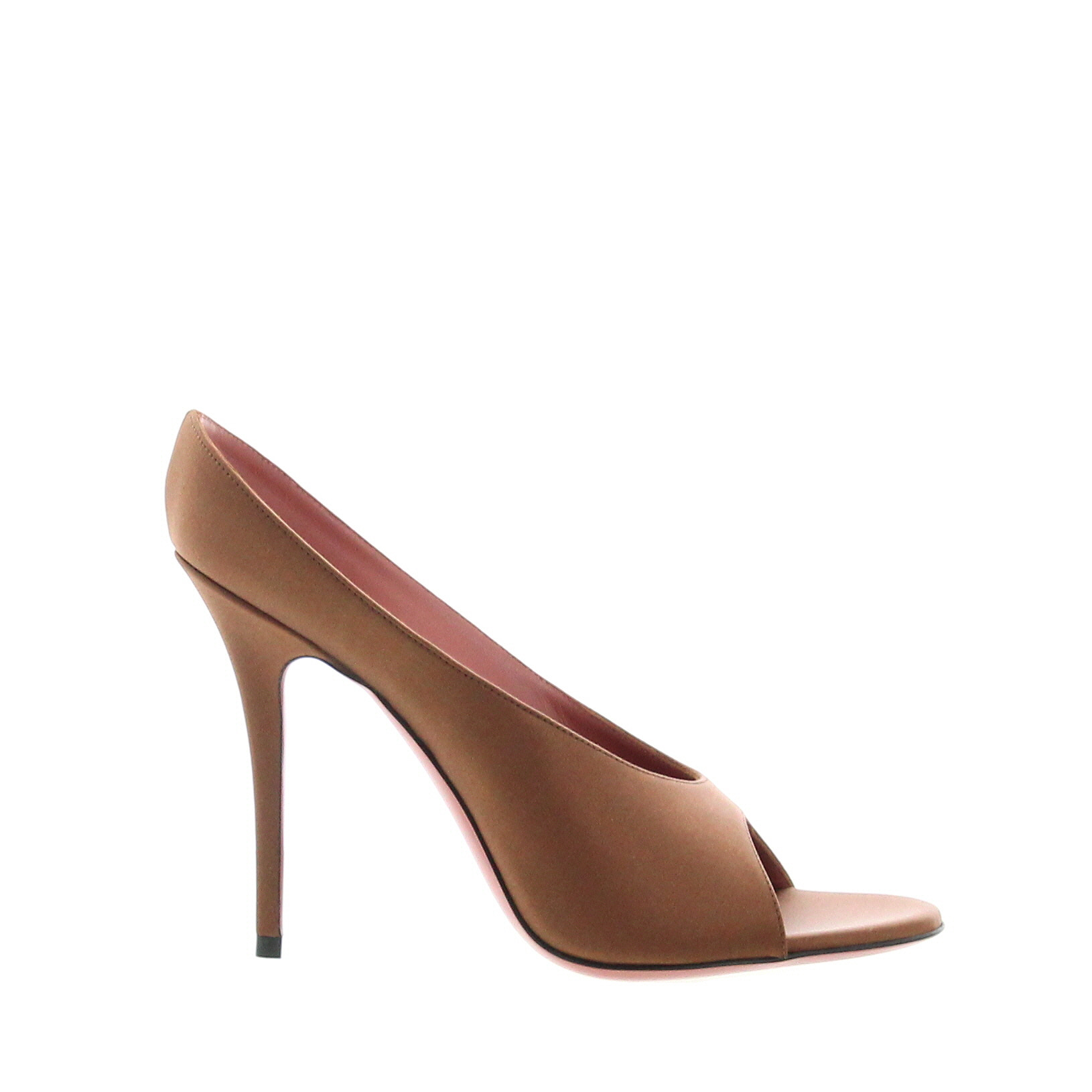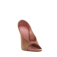 Slippers with an original, very minimalist design. Crafted in Mocha satin and set on a 105mm stiletto heel. Made in Italy.
