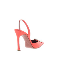 The Amina Muaddi's Camelia slingback is set on a stiletto 105mm heel and crafted in Orange satin. leather sole, Made in Italy.
