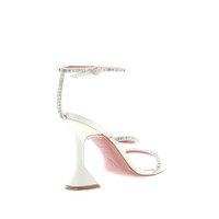 The Gilda sandal is set on the iconic 95mm heel by Amina Muaddi. Crafted in White Satin with White crystals, the thin straps make the sandal very light to the eye. Made in Italy.