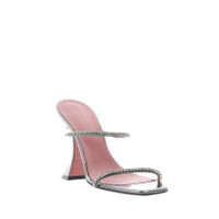 The Gilda slipper is set on the iconic 95mm heel by Amina Muaddi. Crafted in Antique mirror Leather with matching crystals, the thin straps make the sandal very light to the eye. Made in Italy.
