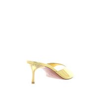 Slipper with wide band made of gold mirrored leather. Set on a 60mm kitten heel. Leather sole with rounded toe. Made in Italy.