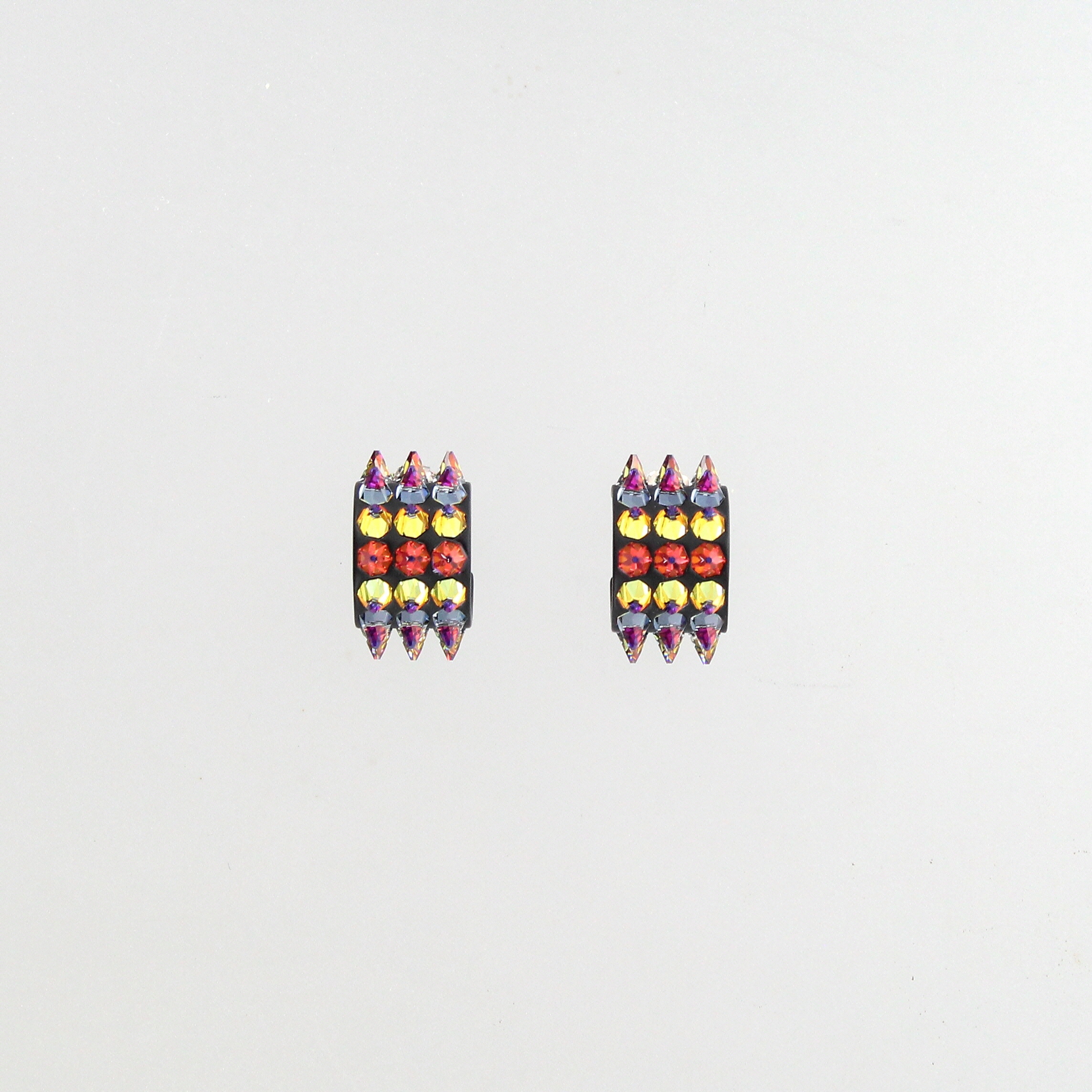 The Karma hoop earrings are made from black-tone matt metal with multicolor crystal spikes. Width 0.6IN, 1.7cm - Length of drop 0.9in, 2.2cm. Made in Italy.