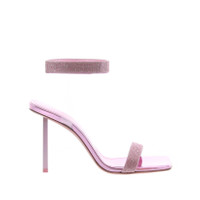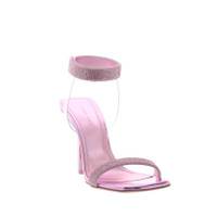 A new heel for the Rih Sandal, in baby pink metal, straight and squared, 95mm high. Crafted in Baby Pink mirror leather with white Chrystal mesh, the closure of the strap on the instep is with velcro, square toe, leather sole with non-slip. Made in Italy.