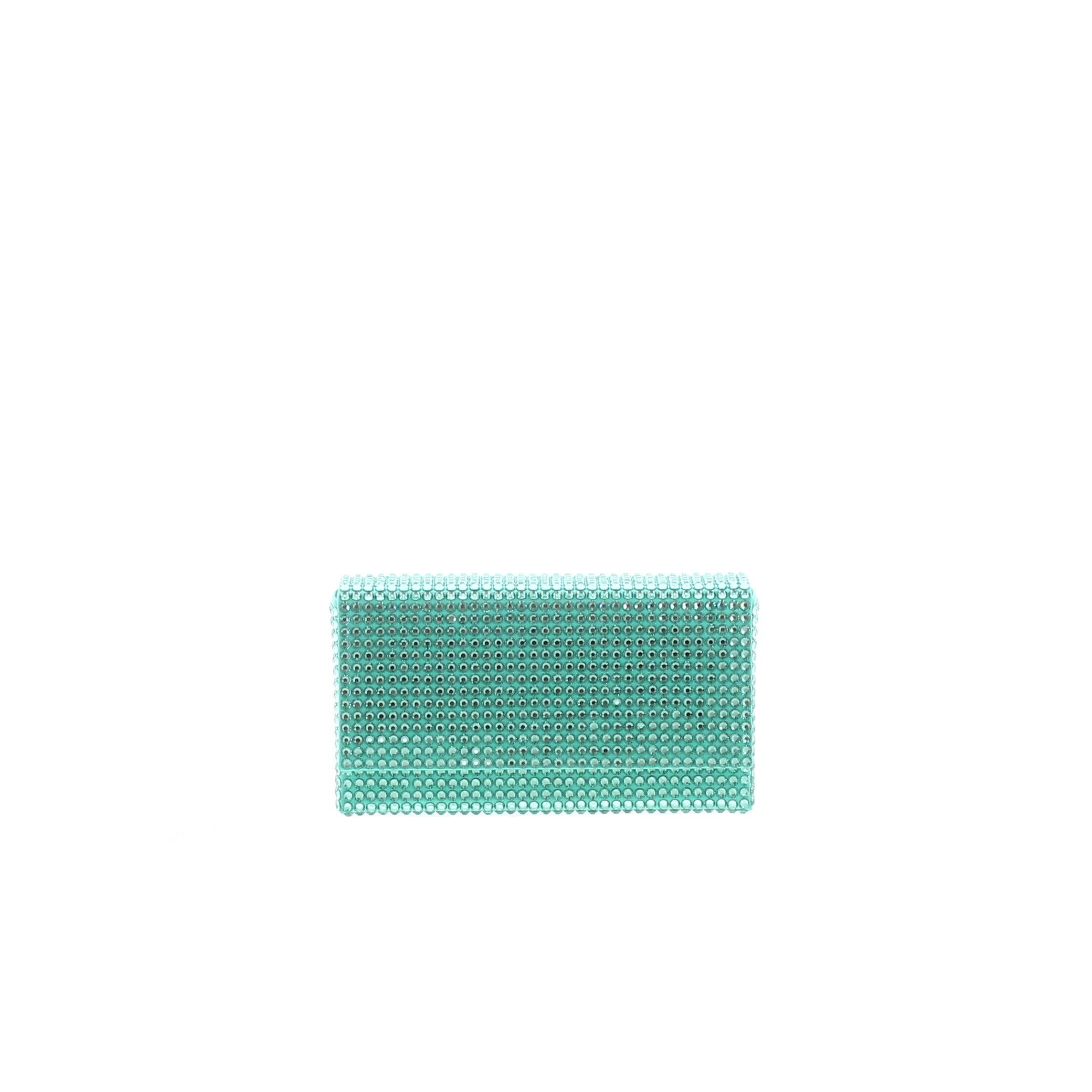 Amazing clutch by Amina Muaddi in Caribbean Satin embellished with Sea crystals. Dimensions: width 16,5, height 8,5 and depth 3,5cm, silver shoulder chain, drop 49cm. Made in Italy.