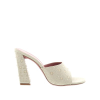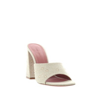 Slipper with wide band embellished with colorless stones, crafted in Beige Canvas. Mounted on a 95mm inclined chunky heel, leather sole and squared oblique toe. Made in Italy. 890.00 €