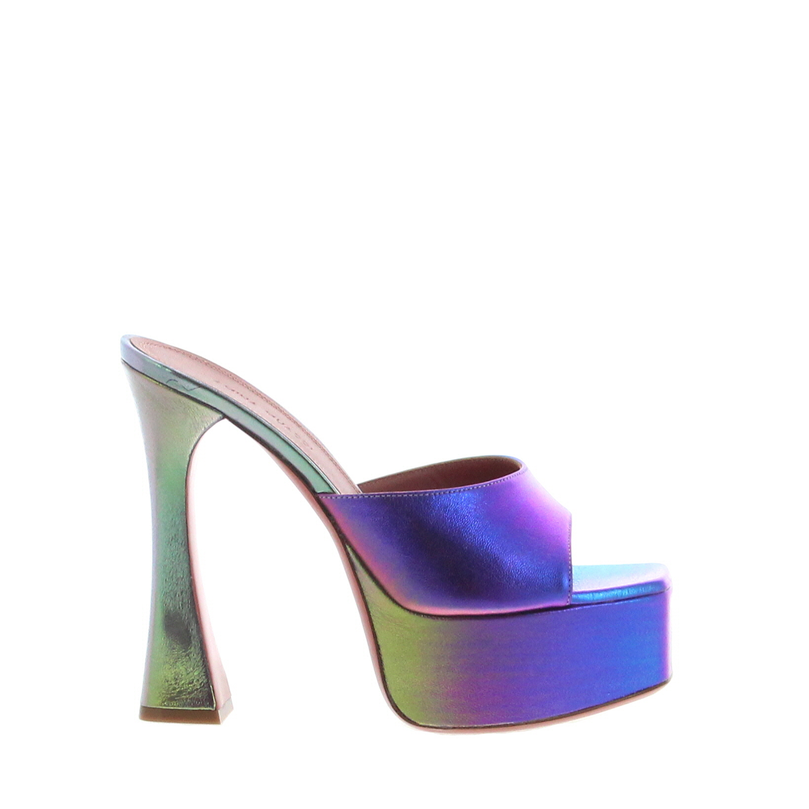 Platform mule with a staggering curved heel, the Dalida sandal has plain band on the toe. Stacked heel of 140mm with 40mm platform. Crafted in Metallic Nappa Unicorn, Made in Italy. 725.00 € Le prix initial était : 725.00 €.