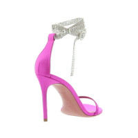 An elegant high heel sandal with thin band on the toes and a rhinestone bracelet that runs around the ankle, crafted in Cyclamen satin and set on a 105 mm stiletto heel. Made in Italy. 1,055.00 €