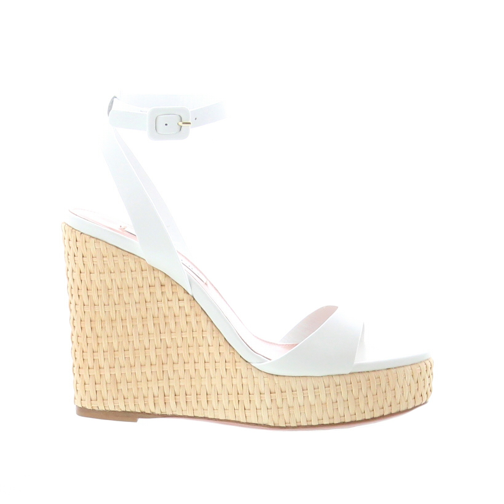 Comfy wedge sandal with toe strap and ankle strap. Crafted in Tobacco calf leather and set on a 110mm wicker wedge and 40mm platform. Leather sole. Made in Italy.