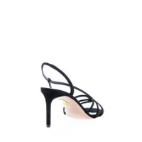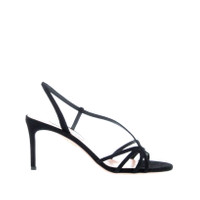 Elegant sandal, three front straps and a strap along the inside of the sandal that goes up to the heel. Crafted in Black suede, Set on a 75mm stiletto heel. Leather sole. Made in Italy.