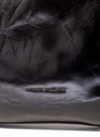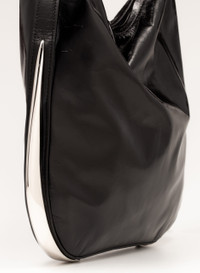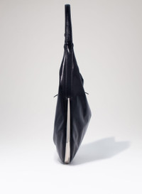 Practical shoulder bag, lightweight, a large compartment that can hold everything. Featuring an aluminium side detail. Crafted in Black box calfskin and lined in suede calfskin, silver hardware. Dimensions H43 D8 W38 cm, handle drop length 18/36cm. Made in Italy.