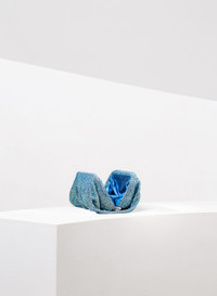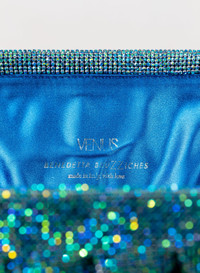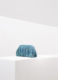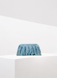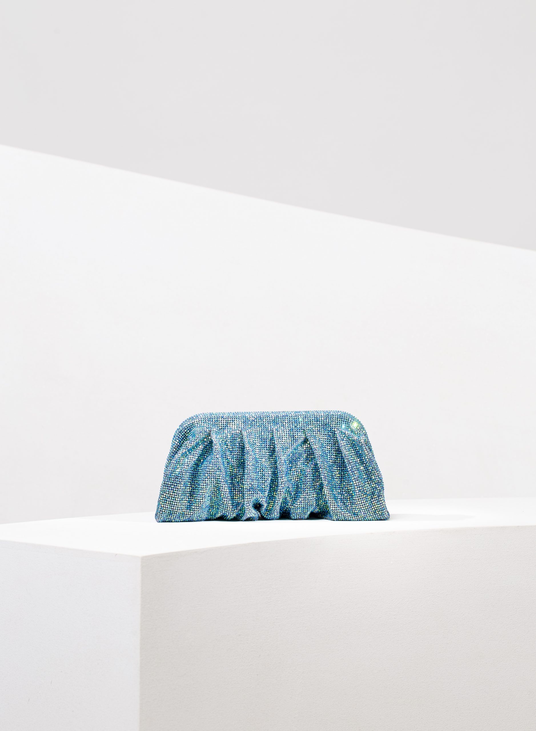 A superb clutch with soft and wavy shapes, totally hand stitched in Octane aluminium crystal mesh and silk satin lining. Dimensions H13 D5,5 W32 cm, Made in Italy