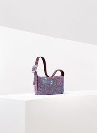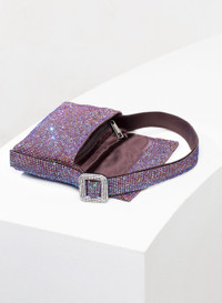 A seductive and fun Mini Bags, totally hand stitched in aluminium crystal mesh and Bronze silk satin. It swings near the shoulder at every movement of the body. Dimensions H12 D3 W18,5 cm, Made in Italy