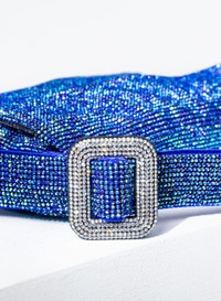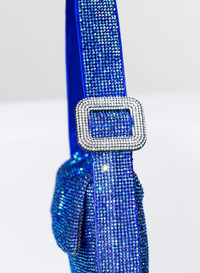 A seductive and fun Mini Bags, totally hand stitched in aluminium crystal mesh and silk satin in Saphire color. It swings near the shoulder at every movement of the body. Dimensions H13 D3 W20 cm, Made in Italy