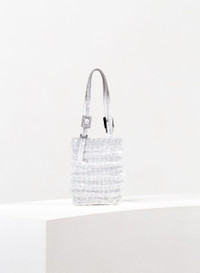 A mini-tote featuring a pure silk satin soul adorned with crystal mesh. Handle drop 17cm, Shoulder strap drop 55cm. Dimension: H: 17cm X D: 3cm X W: 14cm. Made in Italy.