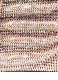 A mini-tote featuring a pure silk satin soul adorned with crystal mesh. Handle drop 17cm, Shoulder strap drop 55cm. Dimension: H: 17cm X D: 3cm X W: 14cm. Made in Italy.