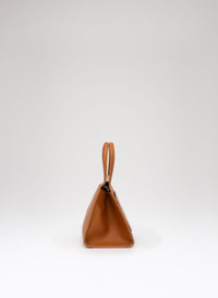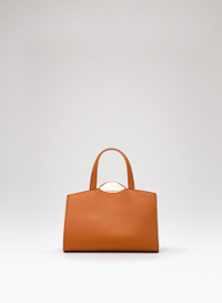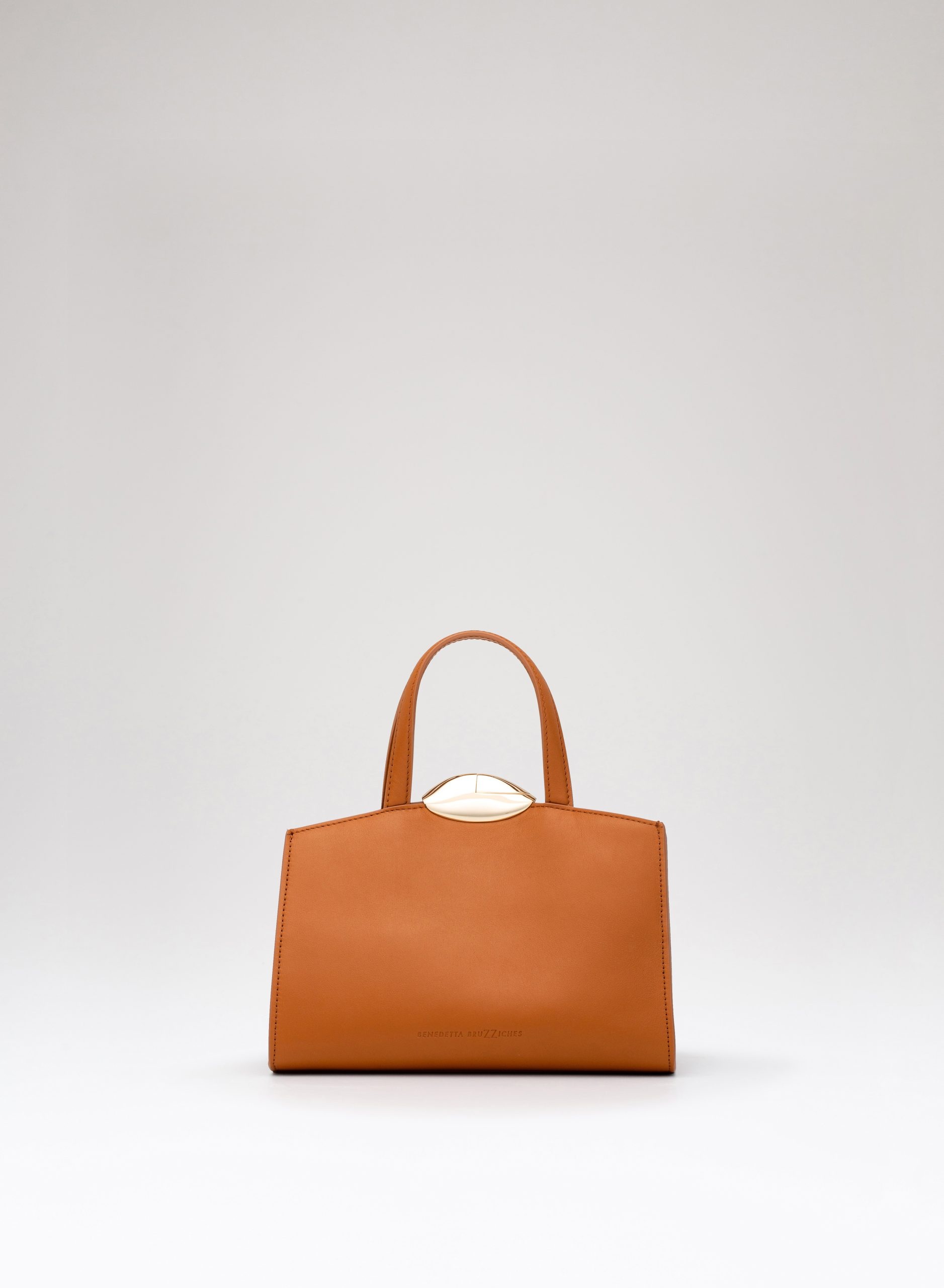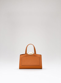 Practical tote with a minimalist design. Very elegant and chic. On the inside it has a flat zipped pocket and credit card slots as well as a useful mirror. It also has a flat pocket on the back of the bag and an adjustable and removable shoulder strap. Crafted in Caramel box calfskin and lined in suede calfskin, gold hardware. Dimensions H16 D12,5 W23,5 cm, handle drop length 8cm, shoulder strap 41/50cm. Made in Italy.
