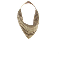 A metal mesh scarf that fits perfectly around a satin case whose zip is accessible on one side. A hanging pocket equipped with a slender metal shoulder strap. Dimensions H37 W22 cm, handle drop 18cm. Made in Italy