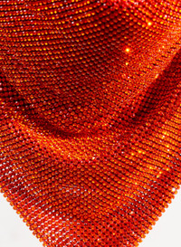 A metal mesh scarf that fits perfectly around a satin case whose zip is accessible on one side. A hanging pocket equipped with a slender metal shoulder strap. Dimensions H37 W22 cm, handle drop 18cm. Made in Italy