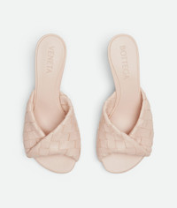 Blink mule with folded band. Crafted in intrecciato New Cameo lambskin , set on a comfortable kitten heel 5cm high (2in), the rubber-injected leather outsole make this sandal comfortable. Made in Italy