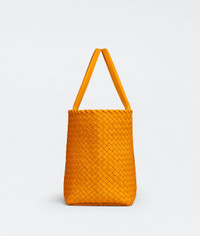Medium Cabat in Tangerine Intrecciato lambskin zipped removable pouch inside, gold hardware. Dimensions: H45 W40 D16cm, handle drop 18cm. Made in Italy.